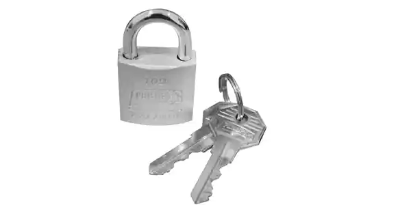 Candado pequeño de hierro plata ideal para maletas, lockers o maletines. Incluye 2 llaves