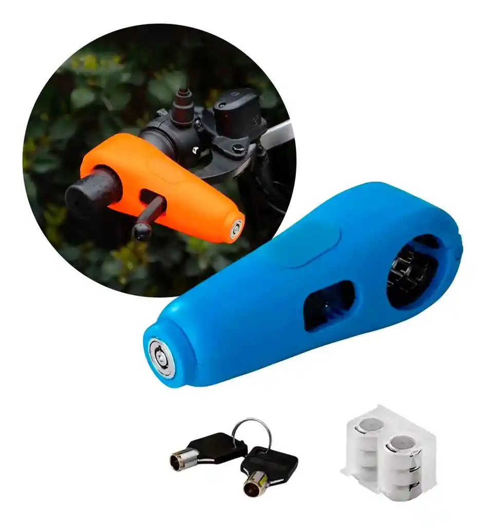 Material ABS de alta calidad, resistente Peso liviano Agujero Superior 3cm (diámetro) Agujero para freno 2cm x 1.5cm 16CM ANCHO X 3CM ALTO Colores variados sujetos según su disponibilidad. Candado antirrobo para moto, scooter o bicicleta Bloquea el manillar y la palanca de freno Sistema de bloqueo rápido y seguro con llave Diseño compacto y portátil, fácil de transportar Instalación y uso en cuestión de segundos Apto para la mayoría de manillares y frenos estándar Ideal para proteger tu vehículo en espacios públicos *IMPORTANTE* El color del producto puede variar, según la disponibilidad en el momento*