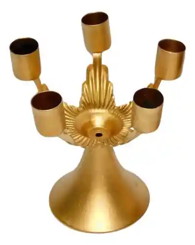 REF C468-23 COLOR DORADO Este candelabro de cinco brazos es una pieza elegante y sofisticada que agrega un toque de esplendor a cualquier espacio. Con una altura impresionante de 14 pulgadas, se alza majestuosamente, atrayendo la atención hacia su diseño imponente. Sus cinco brazos curvados y delicados se extienden en direcciones simétricas, cada uno terminando en una suave copa diseñada para sostener velas. El diámetro de 18 pulgadas proporciona una presencia substancial, asegurando que este candelabro se destaque como un elemento central en la decoración. El color dorado resalta la belleza clásica y atemporal del candelabro, añadiendo un toque de opulencia y calidez a cualquier ambiente. La tonalidad dorada brilla con elegancia, capturando la luz de manera sutil y creando un ambiente acogedor y lujoso. Este candelabro no solo cumple su función práctica como fuente de luz, sino que también sirve como una obra de arte decorativa que eleva el estilo y la estética del espacio en el que se encuentra. Ya sea en una mesa principal, en un salón o como pieza central en una ocasión especial, este candelabro de cinco brazos se convierte en un elemento distintivo que encarna la belleza clásica y el lujo refinado.