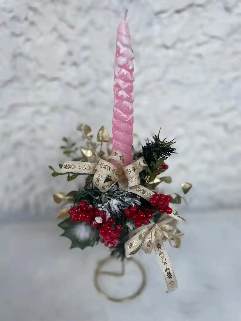 CANDELABRO EN BRONCE CON VELA Y DECORACION NAVIDEÑA