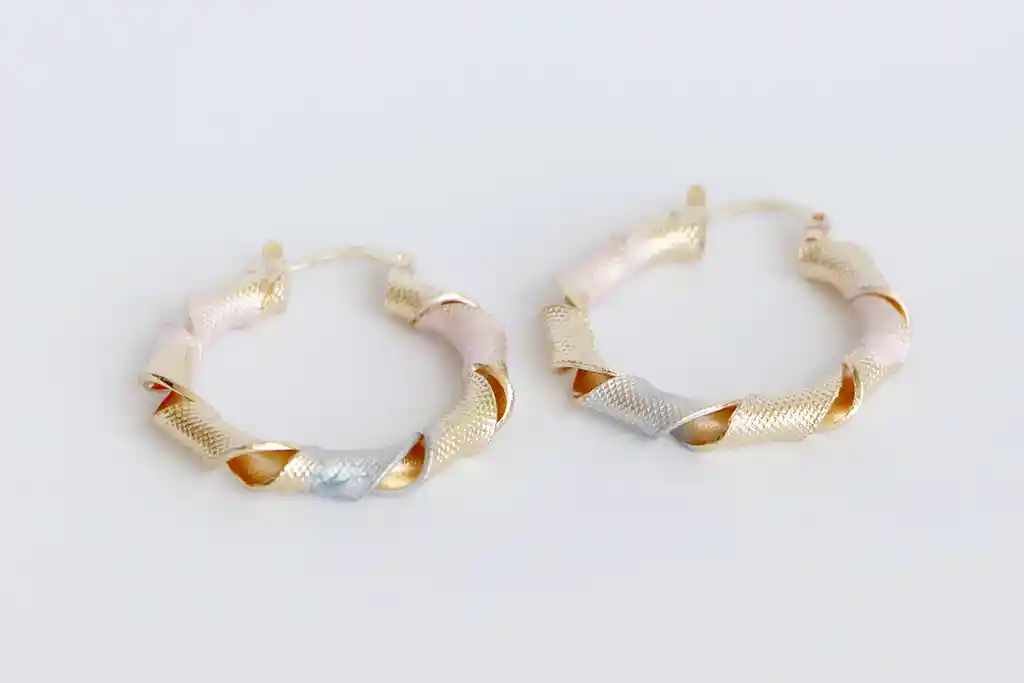 Candonga en bronce con baño en oro de 18 k pintadas color rosa y azul.