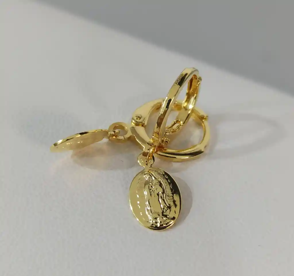 Candongas medianas con dije de la virgen Guadalupe en medida de 2 1/2 cms. Joyas de alta calidad en oro laminado 18k, diseñadas con elegancia y sofisticación. Joia fina te ofrece un toque de lujo y estilo en cada pieza. La garantía procede por cambios significativos de color. No cubre mal uso del producto, como rayones, ni piezas que fueron probadas o sometidas a productos químicos.
