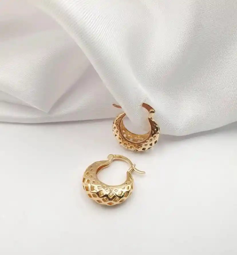Hermosa Candonga Rodio Grabada Dorada con Diametro de 2.0 cm
