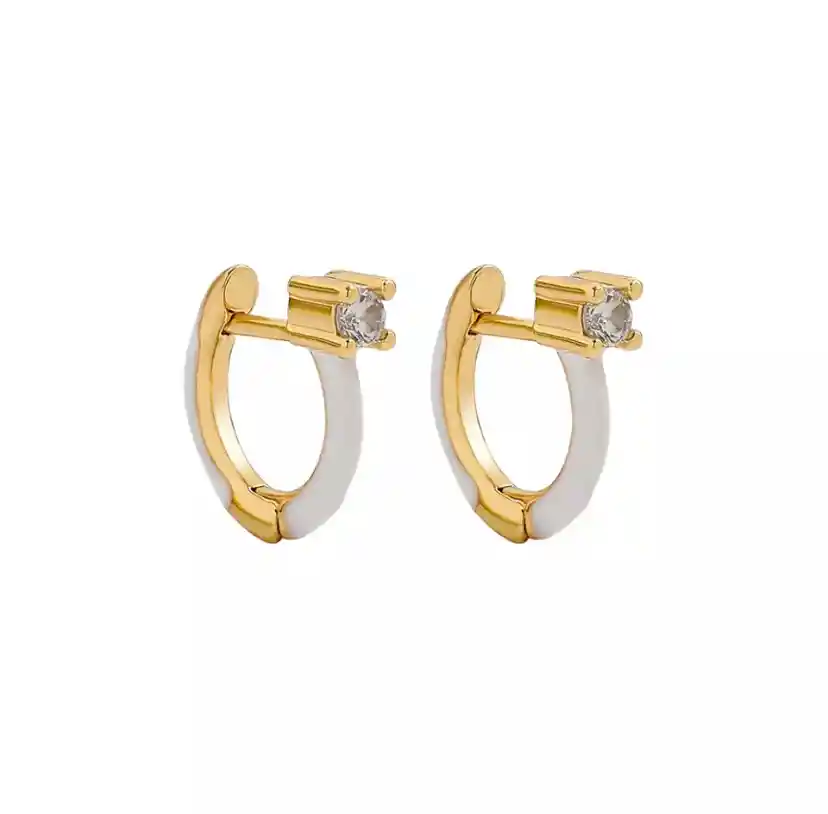 Elegantes Pendientes Pequeños Dorados con Gema Blanca