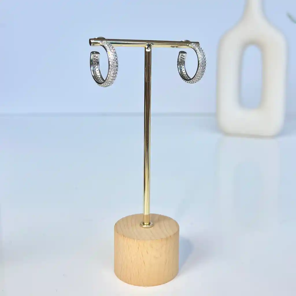 La elegancia atemporal de estas candongas plateadas, adornadas con deslumbrantes diamantes que reflejan la luz en cada movimiento. Su diseño clásico y sofisticado las convierte en el complemento perfecto para cualquier ocasión, desde eventos formales hasta momentos casuales con estilo.