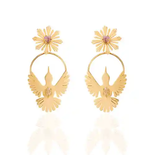 Candongas Colibri elaboradas en bronce con baño de oro 24 km