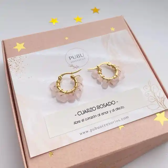 A14-1 Lleva contigo la energía del amor incondicional. Estas candongas combinan la resistencia del acero con la suavidad natural del cuarzo rosado, creando una pieza femenina que ilumina el rostro. Material: Acero de alta calidad y piedras de cuarzo rosado natural. Significado: El cuarzo rosado es conocido como la piedra del amor propio y la paz infinita. Medida: 1 cm de ancho (ideales para un look delicado y minimalista). Por qué las amarás: Son ligeras, hipoalergénicas y perfectas para añadir un toque romántico a tu día a día.