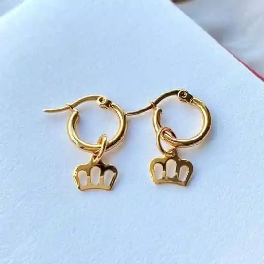 Candongas En Acero Pequeñas Diseño Corona Dorada