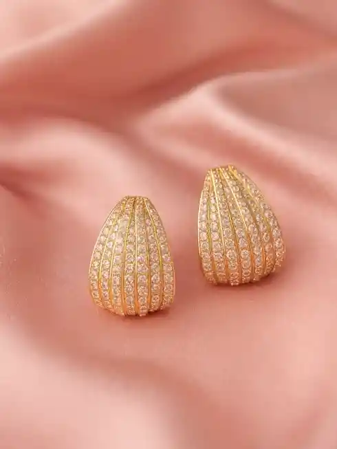 Aretes en bronce con baño en oro 18k y microcircones de cristales