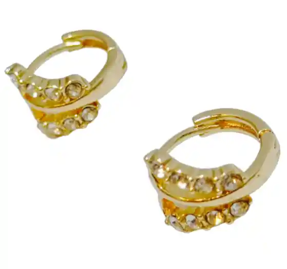 Estas candongas hechas en acero quirúrjico son antialérgicas e inoxidables, además de ser ideales para tu segunda perforación o para niñas ya que son muy delicadas. Color: Doradas con pedrería blanca.