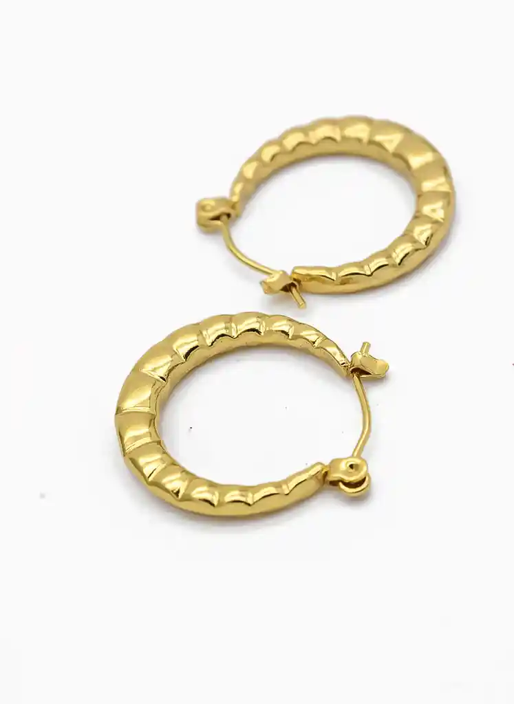 Descubre el equilibrio perfecto entre lo clásico y lo contemporáneo. Nuestras candongas de diseño escalopado no son solo un accesorio, son una declaración de estilo que captura la luz desde cualquier ángulo. ¿Qué las hace especiales? Diseño de Lujo: Su relieve texturizado aporta un volumen elegante y un brillo facetado que resalta tu rostro al instante. Acero Inoxidable 316L: Material de grado quirúrgico con un acabado dorado de larga duración. Garantizado: no se manchan, no se oxidan y mantienen su brillo original. ⏳ Seguridad y Confort: Cierre de bisagra tipo italiano, ultra seguro y diseñado para que puedas usarlas todo el día sin sentirlas. Hipoalergénicas: Máximo cuidado para tu piel, libres de níquel para evitar cualquier irritación. ✅ El detalle que transforma un look básico en uno extraordinario. Ideales para la mujer que busca calidad premium y un diseño que nunca pasa de moda. TAMAÑO 3.CMS