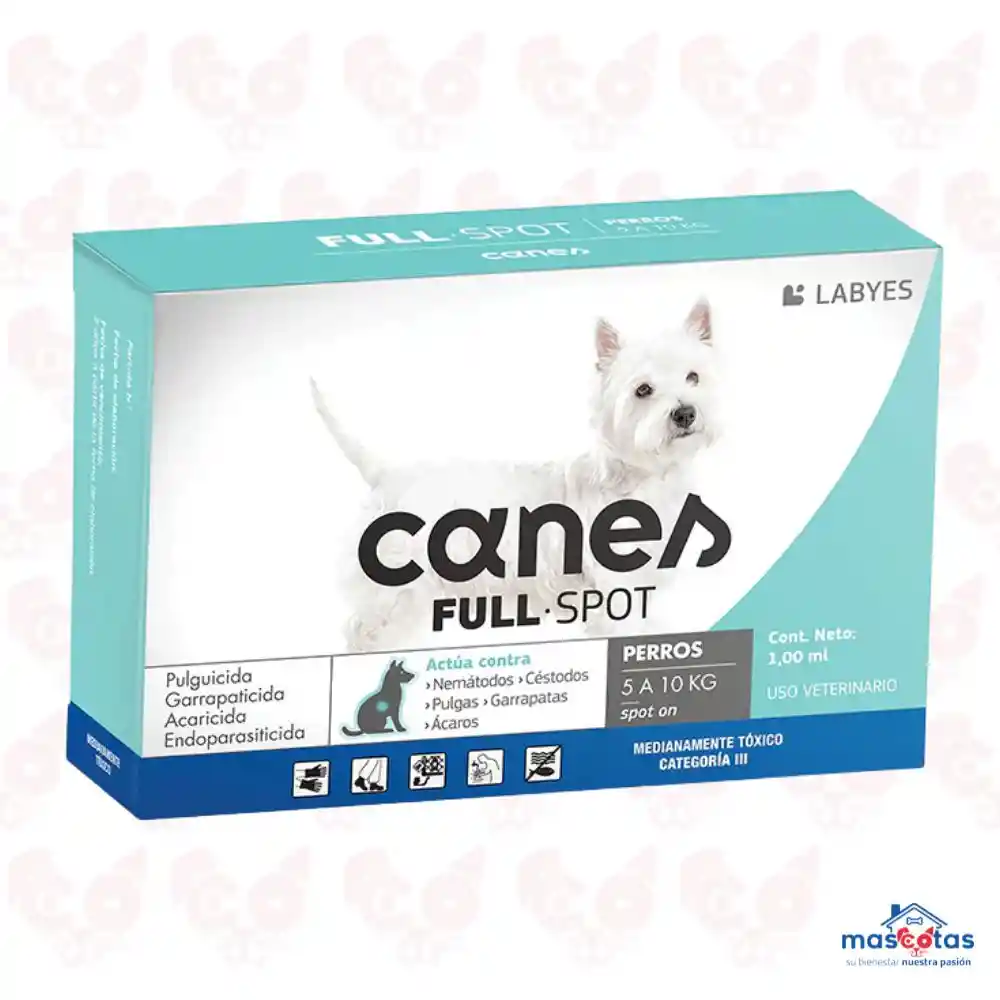 Descripción del producto Antiparasitario interno de aplicación spot-on. Su efectiva formulación elimina los parásitos internos que con mayor frecuencia afectan a los perros. Facilita la desparasitación interna de la manera más práctica y menos invasiva. Ofrece 30 días de protección activa, no requiere pronta repetición ni tolerancia digestiva. Ideal para perros con un peso de 5 a 10 Kg. Canis Fullspot se recomienda a partir de las 6 semanas de vida y de 1 kg de peso, se puede utilizar en hembras en lactancia, animales debilitados o enfermos e incluso en aquellos con intolerancia digestiva. La Moxidectina perteneciente al grupo de las milbemicinas, es altamente efectiva contra nematodos, tanto adultos como larvas. El Praziquantel, por su parte, posee amplia efectividad frente a trematodos y cestodos. Canis Endo spot se recomienda a partir de las 6 semanas de vida y de 1 kg de peso, para el tratamiento, control y prevención de las parasitosis internas causadas por nematodos y/o cestodos. El tratamiento es realizado en dosis única. Composición Cada 100 ml contiene Moxidectina 3,5 g Praziquantel 10,0 g Excipientes c.s.p. 100 ml Instrucciones de uso Uso Tópico. Canis Endospot se aplica en forma de spot-on, directamente sobre la piel, en un área de distribución desde la nuca hasta la cruz, a fin de evitar el lamido del producto.
