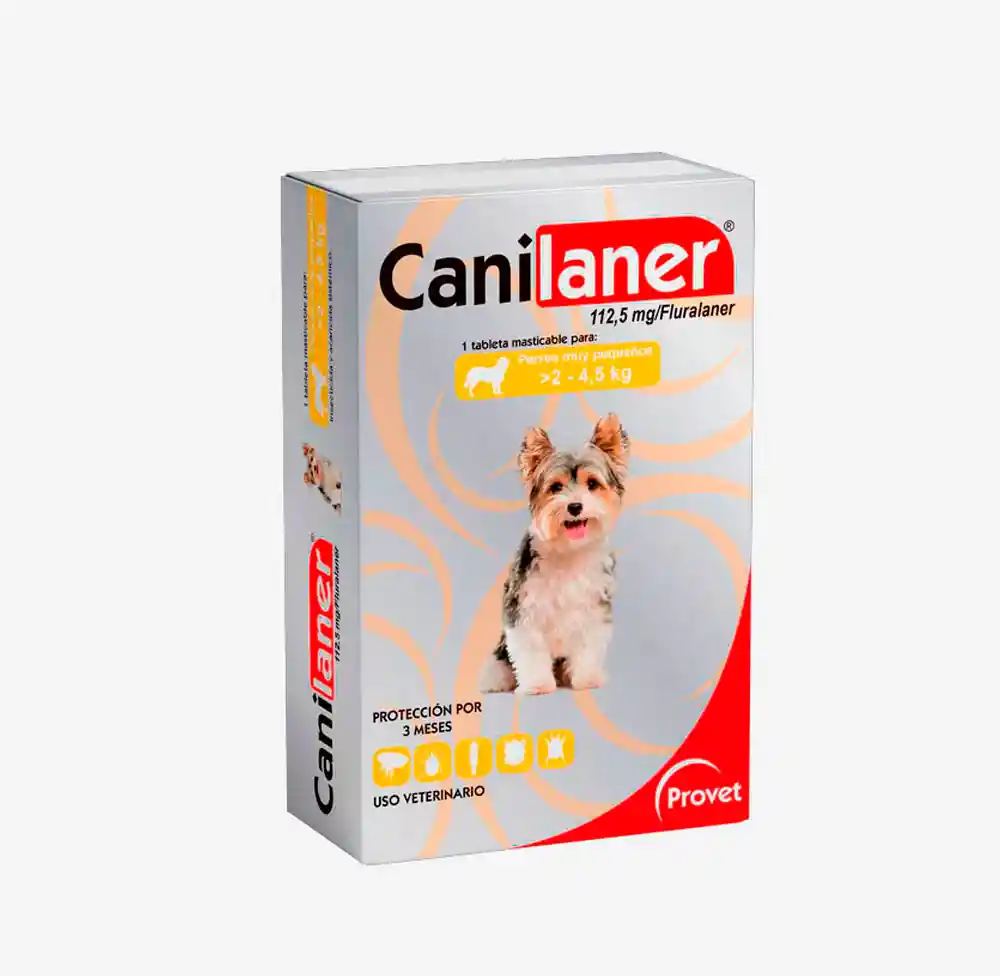 Canilaner es una tableta masticable saborizada, que contiene fluralaner micronizado. Esta indicado como insecticida y acaricida sistémico