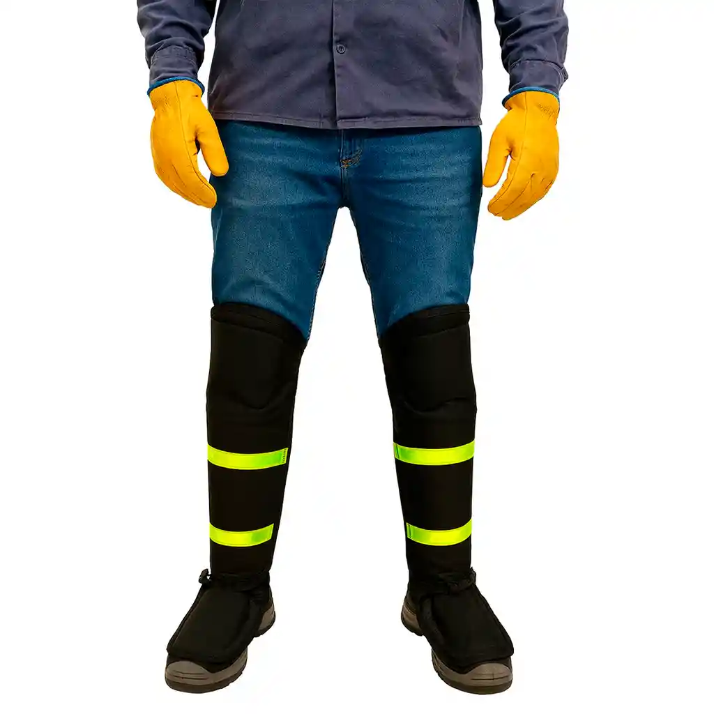 Canilleras para Guadañar Tipo Smad con Reflectivo Protección Pie Producción Nacional. Protección en pie, rodilla y espinilla. Canillera Tipo Smad. Fabricada en Lona HTR Impermeable. Color: Negro. Medidas: Altura 62 Cm x Ancho 23 cm +- 1 cm Refuerzo interno con 3 piezas en lámina Galvanizada calibre 24 (1 de 19.5 x 10 cm) (1 de 28.5.5 x 20 cm) y (1 de 10.5 x 10 cm). Forro en espuma de polietileno de celda y forro espumado. Reata Reforzada y 4 Click Clack expandible. Costuras en Hilos Bondeada No. 46 Resistente hasta 80 kilos de Golpe. MATERIAL: Poliéster al 100% y Lona HTR Impermeable – Lámina Galvanizada TALLAS: Única COLOR: Negro NORMATIVIDAD: N/A