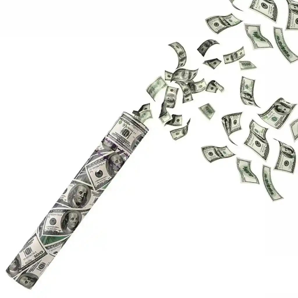 Cañón Lanzador De Confeti en forma de dólares, para fiesta, hora loca. Largo 30 cm
