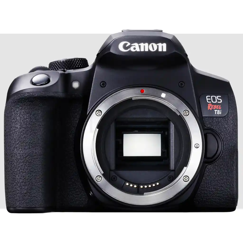 Pantalla táctil de ángulo variable de 3.0 y 1.04millones de puntosSensor CMOS formato APS-C de 24.1MPVideo UHD 4K 24pSoporte de video verticalWi-Fi y Bluetooth integrados45 puntos de Auto enfoque con detección de fase de tipo cruzadoISO 100-25600. disparo de hasta 7 fpsSensor AE de 220.000 píxelesProcesador de imágenes DIGIC 8Paquete incluye:1x Cámara Canon EOS Rebel T8i DSLR (solo cuerpo)1x Batería Canon LP-E171x Cargador Canon LC-E17 para batería LP-E171x Tapa de cuerpo Canon RF-3 para cámaras Canon EOS1x Protector de visor EF-21x Correa para el cuello