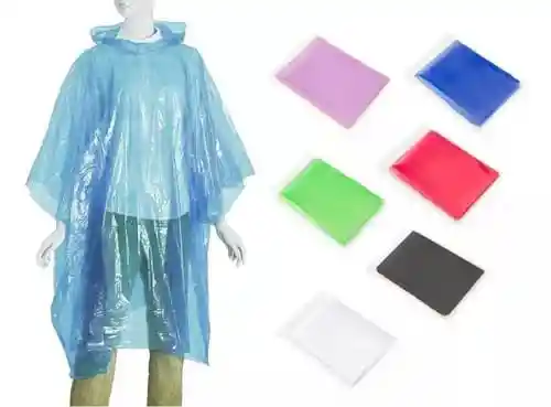 ¡Protección contra la lluvia al instante! Capa impermeable plástica en colores surtidos, ligera y fácil de llevar. Ideal para emergencias. ¡No te mojes, llévala siempre contigo!