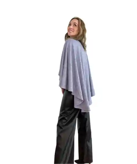 “Capa liviana y abrigadora en tejido de cashmere con viscosa. Es asimétrica con un cuello muy cómodo y abierto que no se va a ensuciar con maquillaje! Te la puedes poner asimétrica con una manga más larga que la otra o corta adelante y larga atrás. Es el complemento perfecto del Vestido Luisa y creas uno de nuestros looks de la pasarela de NYFW"