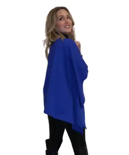 “Nuestra capa Mapa es mi referencia más vendida. Muchas de ustedes la adoran porque es súper versátil y talla única entonces se la compran para ustedes pero también es un regalo muy especial! Con el pasador puedes insertar todo un costado y ajustarla. Puedes dejarla tan larga o corta como quieras y también crear looks asimétricos y dejar el pasador en la mitad y pasar un costado sobre el hombro opuesto para que quede más elegante y cortica. No te preocupes que viene con un instructivo para que le saques el mayor provecho posible, para viajar es espectacular porque queda súper compacta hasta en tu cartera y no necesitas más que esta porque durante 6 días te la puedes poner de las 6 formas y no te vas a ver igual. Es más liviana que la capa Olivia pero también abriga menos.
