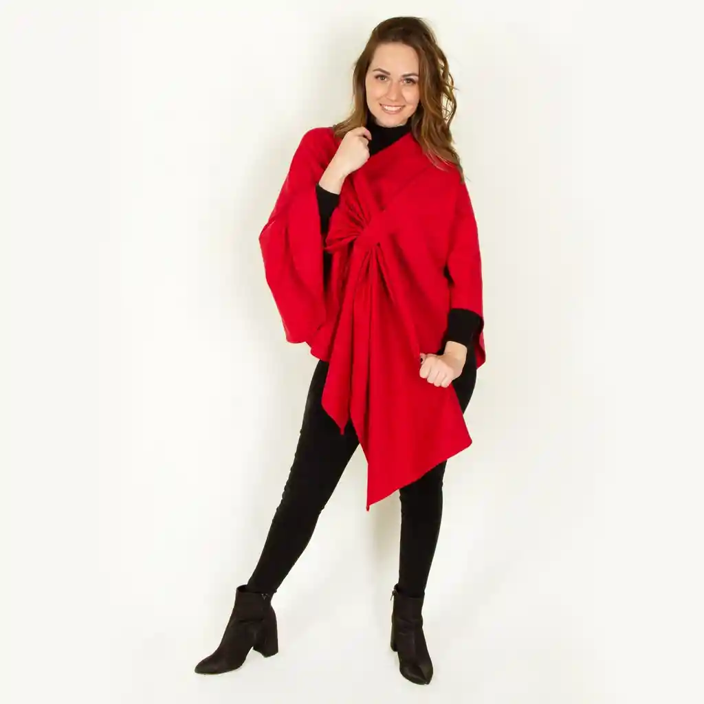 “Nuestra capa Mapa es mi referencia más vendida. Muchas de ustedes la adoran porque es súper versátil y talla única entonces se la compran para ustedes pero también es un regalo muy especial! Con el pasador puedes insertar todo un costado y ajustarla. Puedes dejarla tan larga o corta como quieras y también crear looks asimétricos y dejar el pasador en la mitad y pasar un costado sobre el hombro opuesto para que quede más elegante y cortica. No te preocupes que viene con un instructivo para que le saques el mayor provecho posible, para viajar es espectacular porque queda súper compacta hasta en tu cartera y no necesitas más que esta porque durante 6 días te la puedes poner de las 6 formas y no te vas a ver igual. Es más liviana que la capa Olivia pero también abriga menos.