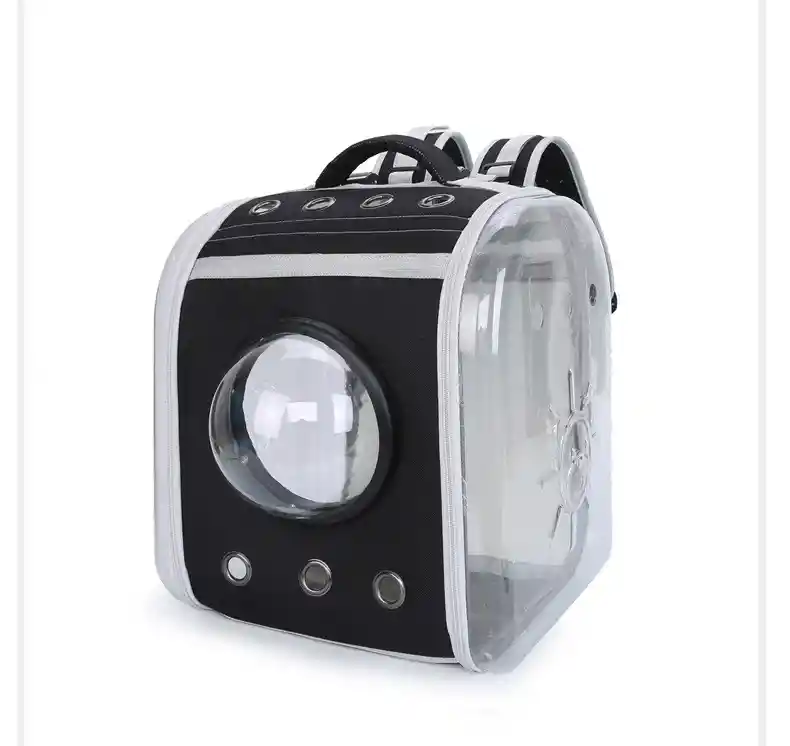 Capsula morral con tela y acrílico ideal para llevar a tu gato o perro raza pequeña. Tamaño: 42cm x 35cm x 27cm