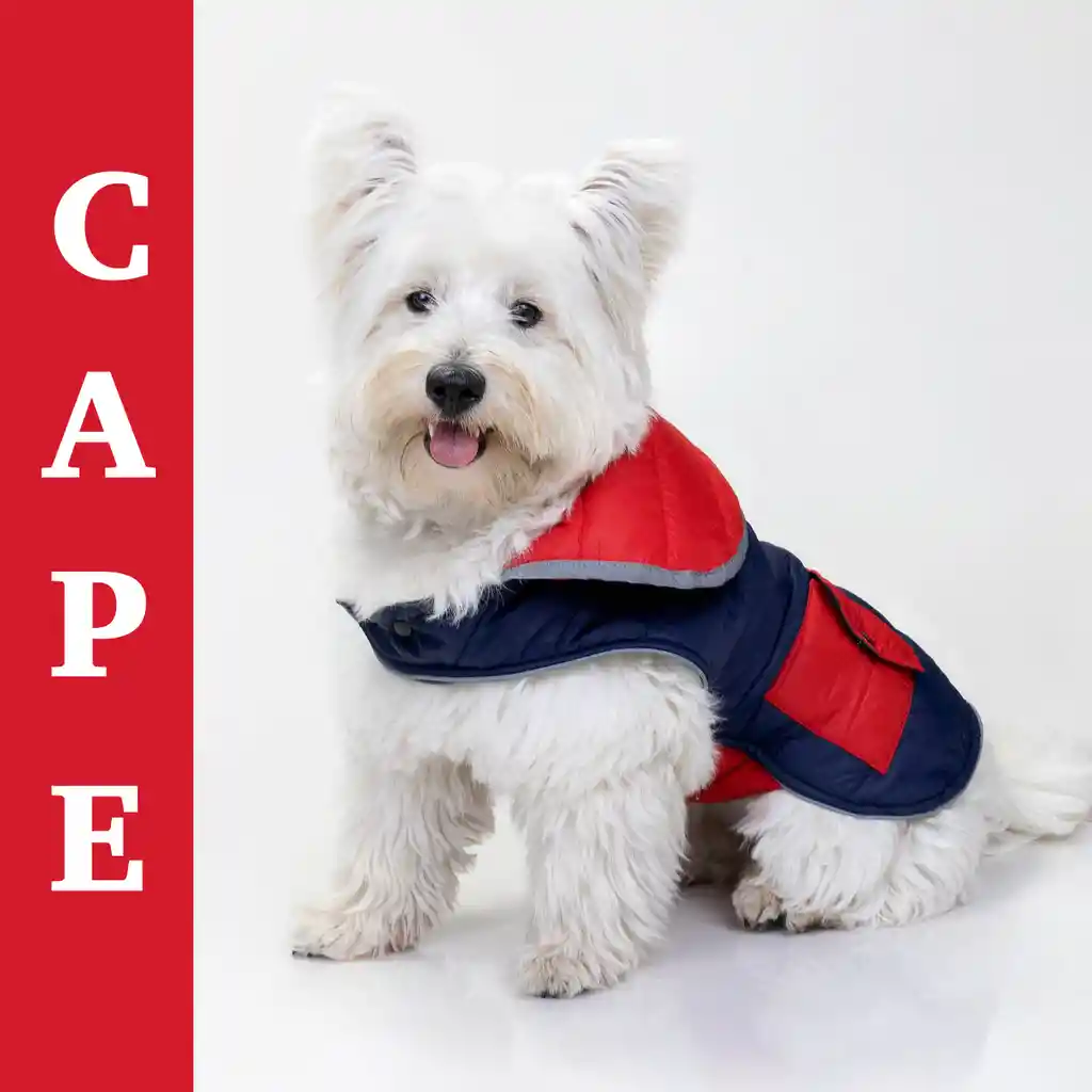 Práctica capa para uso diario fácil de poner fácil de usar protegiendo a tu mascota del agua, frío, viento y mucho más con un arnés para las caminatas y bolsillo para guardar lo que necesites