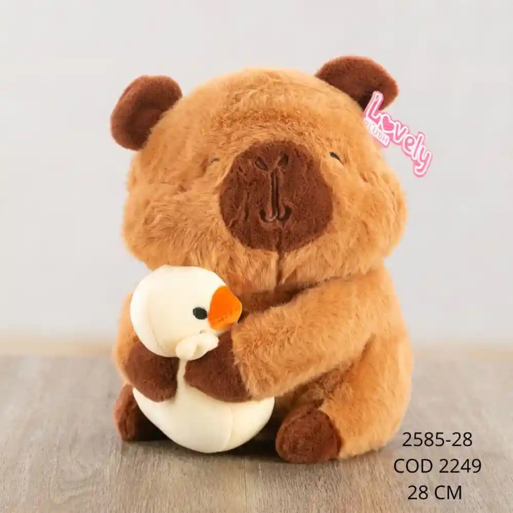 Hermoso peluche de Capibara afelpado de pelo corto. Excelente material y deliciosa fragancia. Tamaño de 28 centímetros.