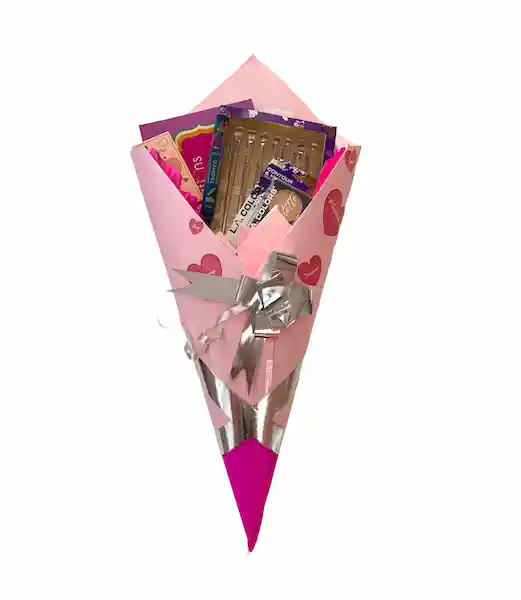Kit de Maquillaje en Forma de Ramo Con Cinco Productos: Paleta de Sombras de 35 Tonos de Beauty Creations, Pestañina Ruby Rose, Rubor de Amor us, Paleta de Contorno e Iluminador L.A Colors y Set de 7 Brochas de Ojos Kleancolor