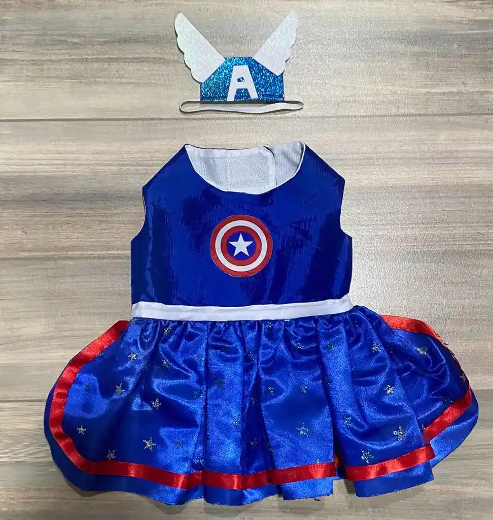 Capitana america con tocado, ideal para tamaño de 8- 10 kg