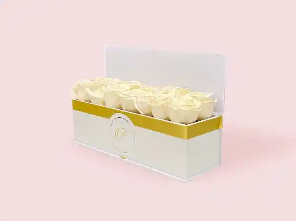 Inspirado en el placer de viajar y descubrir deleitando la vista y el olfato. Ramo de 14 a 15 Rosas blancas