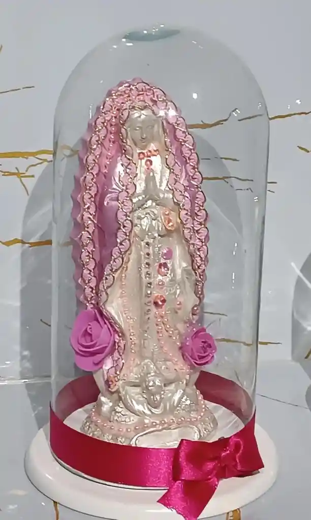Delicada cápsula que contiene una virgen de cerámica, acompañada de un elegante moño. Un detalle lleno de fe y devoción, ideal para regalar en momentos especiales o como un símbolo de protección y esperanza. Un obsequio único que transmite paz y serenidad