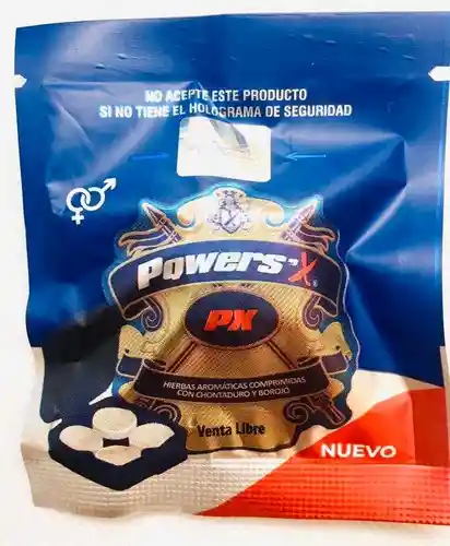 Powers´X No es para el que no puede sinó para elque quiere más. Energizante basado en frutas y plantas que intensifican las virtudes de los nutrientes afrodisíacos más reconocidos a nivel mundial, favoreciendo la producción de factores hormonales que actúan en el organismo de manera natural para aumentar el deseo y la sensación de placer sexual.Tomar 1 comprimido 30 minutos antes de el acto sexual, para HOMBRE & MUJERPowerX no sólo se utiliza para la disfunción eréctil, también proporciona mejores erecciones incluso si no tienes disfunción alguna, aumentando el volumen del flujo sanguíneo al pene. Tu pareja y tu lo van a experimentar.COMPONENTES:– L-Arginina: Es el aminoacido encargado de potenciar la erección. Este aminoacido ha demostrado que es capaz de mejorar la irrigación (tras su conversión en Oxido Nítrico) y la oxigenación de los tejidos, disminuyendo la fatiga y aumentando la recuperación.– Borojó: Fruto natural del bosque chocoano colombiano, es famoso por sus propiedades afrodisíacas en hombres y mujeres y reconocido energizante.– Chontaduro: Potente afrodisíaco, aumenta el deseo y la capacidad sexual.– Guaraná: Fruto originario de la Amazonía colombiana, famoso por ser un potenciador, energizante y revitalizante