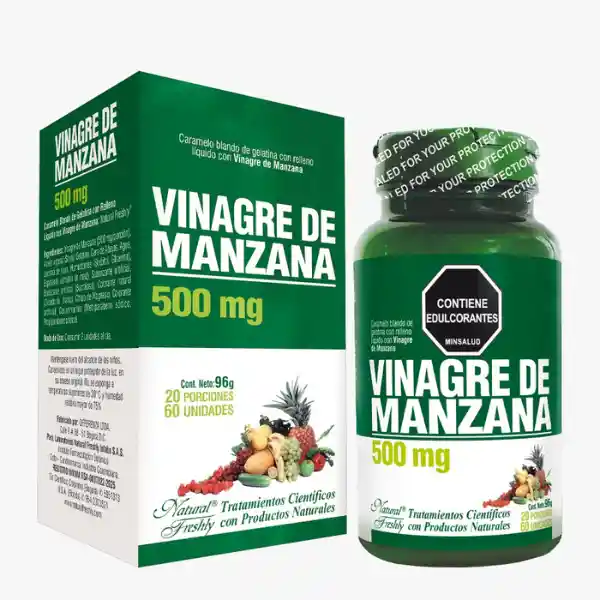 Vinagre de Manzana en Cápsulas Blandas x 60 Unidades Registro INVIMA Vigente: RSA-0037022-2025 Presentación: Frasco con 60 cápsulas blandas El Vinagre de Manzana en cápsulas blandas es una alternativa práctica y fácil de consumir, ideal para quienes prefieren evitar el sabor líquido tradicional. Su formato en cápsulas facilita la ingesta diaria y permite incorporarlo cómodamente a la rutina. Características del producto: Cápsulas blandas de fácil consumo Presentación práctica en frasco Ideal para complementar la alimentación diaria Contenido: 60 unidades Ingredientes: Vinagre de manzana, aceite vegetal (soya), gelatina, agua, almidón de maíz, humectantes (sorbitol, glicerina), lecitina de soya, cera de abejas, sucralosa, dióxido de titanio, colorante artificial, conservantes (metilparabeno sódico, propilparabeno sódico). Modo de uso: Consumir 2 cápsulas al día. Recomendaciones: Mantener en un lugar fresco y seco No exceder la porción recomendada Mantener fuera del alcance de los niños