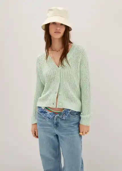 Cierre de Botones en la Parte Delantera Cuello Pico Diseño Recto Manga Larga Tejido de Punto Grueso Terminaciones de Canalé - 47045868_45.