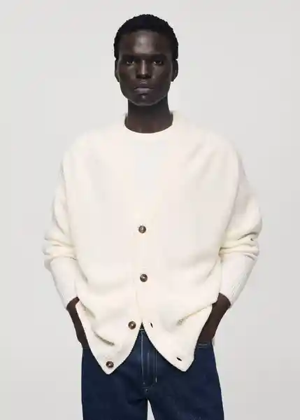 Cierre de Botones, Cuello Pico, el Modelo Mide 185 cm y Lleva Una Talla M, Manga Larga, Relaxed Fit, Tejido de Punto, Terminaciones en Canalé - 77037930_02.
