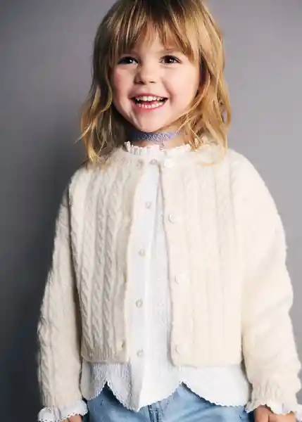 Cierre Delantero Con Botones Cuello Redondo Cuello Puños y Bajo en Canalé Diseño Recto Manga Larga Punto de Ochos Tejido de Punto - 27081179_05.
