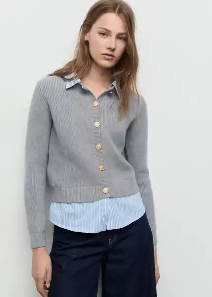 Cierre Delantero Con Botones Cuello Camisero Diseño Combinado Diseño Recto Manga Larga Tejido de Punto Fino - 17035796_92.