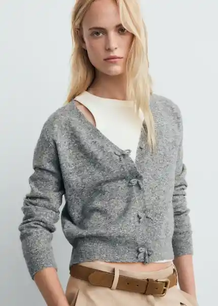 Cierre de Botones en la Parte Delantera Cuello de Pico Diseño Recto Manga Larga Tejido de Punto Medio Tejido Mezcla de Lana - 17065808_94.