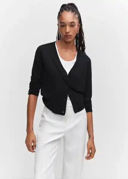 Cierre Delantero Con Botones Cuello Pico Diseño Recto Disponible Plus Looks de Oficina Manga Larga Tejido de Punto Fino - 57044407_99.