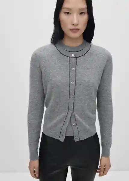 Cierre Delantero Con Botones, Colección Selection, Costuras Decorativas, Cuello Redondo, Diseño Recto, Manga Larga, Tejido 100% Lana, Tejido de Punto Fino - 77056743_94.