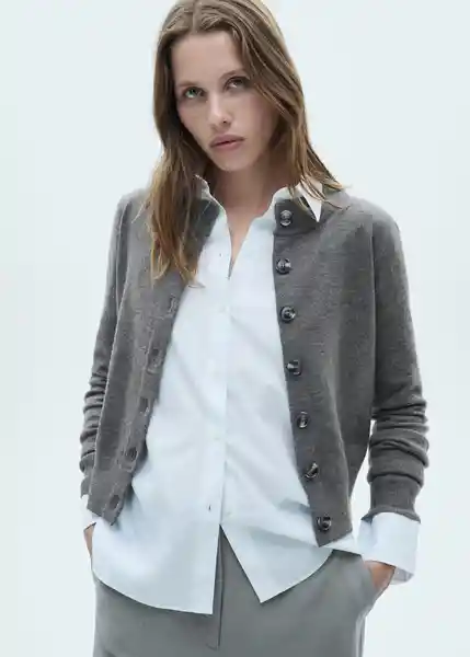 Cierre de Botones en la Parte Delantera, Cuello Redondo, Diseño Recto, Manga Larga, Puños Elásticos, Tejido de Punto, Tejido Mezcla de Lana - 77096722_96.
