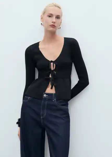 Cierre de Lazos en la Parte Delantera Cuello Escotado Diseño Evasé Manga Larga Tejido de Canalé Tejido de Punto Fino - 17082926_99.