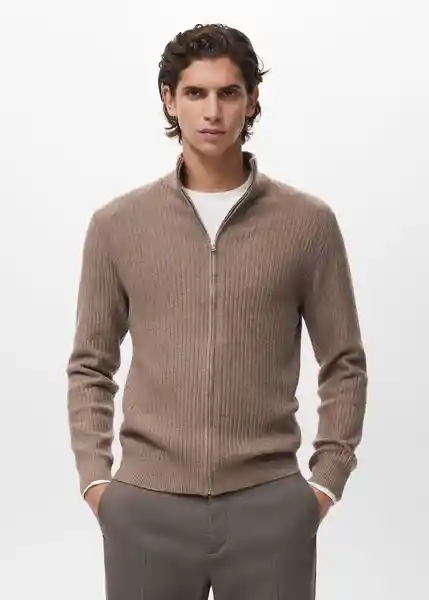 Cierre Delantero Con Cremallera Cuello Perkins Diseño de Canalé el Modelo Mide 190 cm y Lleva Una Talla M Manga Larga Con Puños Elásticos Mangas y Bajo Acabados en Canalé Silueta Recta Tejido de Punto - 17047897_35.