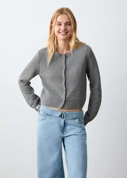 Cierre Delantero Con Botones Cuello Redondo Diseño Recto Manga Larga Tejido de Punto - 27061537_92.