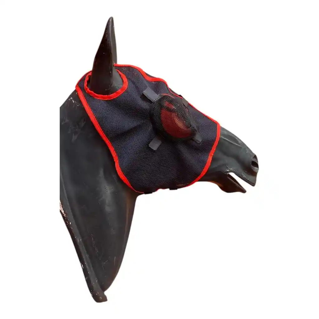Protege a tu caballo con nuestra careta de malla, diseñada para ofrecer máxima comodidad y una defensa superior contra elementos externos. Fabricada con un tejido de malla transpirable y resistente, esta careta es un accesorio esencial para el bienestar de tu equino, ya sea en el pasto, durante el entrenamiento o en el establo. Protección Total: Su diseño integral cubre la cara, los ojos y las orejas, resguardando a tu caballo de insectos molestos (moscas, mosquitos), polvo, suciedad y los dañinos rayos UV del sol. Confort Transpirable: El material de malla permite una excelente circulación del aire, evitando el sobrecalentamiento y manteniendo a tu caballo fresco incluso en climas cálidos. Orejeras Integradas: Las orejeras de malla suave o tela de licra en algunos modelos brindan protección adicional a las orejas sensibles, sin restringir el movimiento ni la audición.