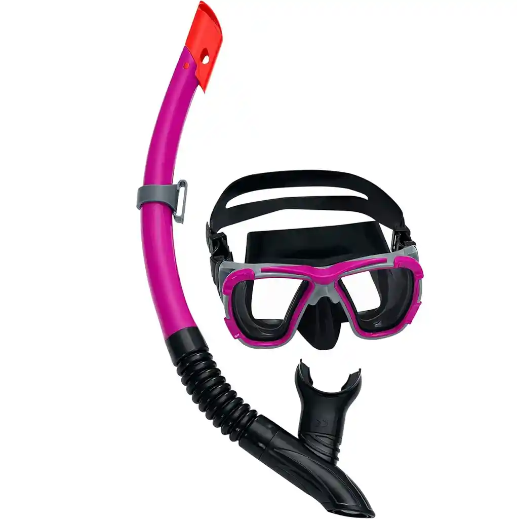 El conjunto de máscara y tubo de buceo Hydro-Pro de Bestway es el accesorio para una experiencia divertidísima bajo el agua. Diseñado para adultos. Las gafas tienen lentes de cristal templado y un doble borde para un ajuste preciso y resistente a las filtraciones. Asimismo, disponen de una tira de sujeción doble para la cabeza totalmente ajustable para que no se muevan durante tus aventuras subacuáticas. La tecnología Dry Top Snorkel evita que el agua se filtre en las gafas para que puedas sumergirte sin miedo bajo la superficie. La pieza bucal del tubo de buceo es de silicona, ergonómica y ortopédicamente diseñada, y lleva una válvula de purga integrada para una fácil expulsión del agua. La sujeción de la cinta del tubo de buceo es ajustable para una mayor comodidad. La sujeción de la cinta del tubo de buceo es ajustable para una mayor comodidad. ///Nota el precio corresponde a un solo set de gafas con su tubo /// // La caja contiene : unas gafas y un tubo de buceo /// Ficha Técnica: Material Lentes: Lentes de Policarbonato con Protección UV Material: Silicona PVC libre 100 % Latex Tira de sujeción: ajustable No apto para menores de 14 años Términos de garantía:Para defectos de fábrica o retractos: Por favor revise el producto apenas lo reciba y antes de usarlo. No aplican ley de retracto o defectos de fábrica luego de usar el producto. Se manejan máximo 5 días para reportar defectos de fábrica (por ejemplo, producto funciona mal, piezas faltantes, rotas, etc). Para hacer efectiva la devolución el producto debe devolverse con el empaque original, el cual debe estar en buen estado, incluir todos los documentos y las partes completas y sin daños.