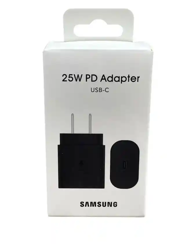 Cargador Tipo Samsung Galaxy 25W Power Delivery Adaptador carga rápida 25W Cargador de 25W. Salida: REALES Entrada TIPO C Salida para : Tipo C Recomendado para celulares de última tecnología Especificación: 1. Material: ordenador personal 2. Entrada: 100-240 V, 50/60 Hz, 1,5 A 3. Salida: 5V 3A, 9V 3A, 11V 5A, 20V 2.5A (Este producto es REPLICA)