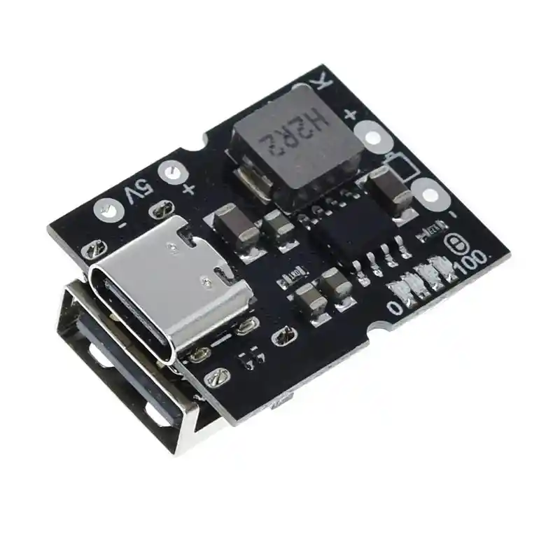 Cuando la corriente de carga es continuamente inferior a 50 mA, la salida se apagará. Admite botones externos, conecte el botón al punto K y la salida negativa, presione brevemente para encender la pantalla de encendido y encienda la salida de 5V, dos presiones cortas seguidas apagarán la pantalla de encendido y apagarán la salida de 5V. Cuando la corriente de carga cae a 100 mA después de alcanzar el voltaje de flotación final, el ciclo de carga terminará automáticamente. Cuando el voltaje de la batería es inferior a 2,8 V, la batería se precargará con una corriente de 180 mA. La posición de soldadura del enchufe hembra USB-A se proporciona en la parte posterior del producto, y el enchufe hembra se puede instalar manualmente. Admite carga y descarga. Cuando el voltaje de la batería cae por debajo de 4,1 V, el ciclo de carga se reinicia. Especificación: Especificaciones opcionales: versión de soldadura / versión sin soldadura Rango de voltaje de entrada: 5~5.5V Voltaje de corte de carga: (4,2 V/4,35 V) ± 0,5 % Corriente de carga: 2,4 A ± 5 % Voltaje de salida de impulso: 5 V~5,15 V (compensación de pérdida de cable) Ondulación del voltaje de salida de impulso: 100 mV Aumentar la corriente de salida: 2A Aumento de la eficiencia de conversión: 92,5 % (entrada de 3,6 V, salida de 5 V y 2 A) Corriente de reposo final de la batería: <30uA LA COMPRA INCLUYE: 1x CARGADOR BATERIA BMS IP5306 ELEVADOR TIPO C 5V 2A