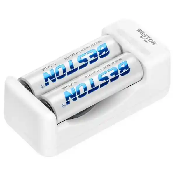 Características -Incluye 2 baterías AA recargables de 3.000mAh. -Carga hasta 2 baterías recargabes AA/AAA ó 1 batería recargable 9V (6F22) Ni-MH/Ni-Cd. -El LED indicará el proceso de carga, no se apagará cuando las baterías estén completamente cargadas. -Modo de carga a corriente baja constante, hará la vida de la batería más larga conector mundial de voltaje. Precaución: -El uso incorrecto puede provocar descargas eléctricas. -Este cargador debe colocarse fuera del alcance de niños. -Los niños deben utilizar el cargador bajo supervisión de un adulto. -No puede ser desarmado o armado por persona no profesional. -Use en temperaturas entre 0°C- 40°C. -No lo use bajo el sol o la lluvia. Especificaciones -Entrada: AC100240V 50/60Hz. -Salida: 1.2V DC 240mA 9V 35mA AAX1 120mA AAX2 120mA AAAX1 120mA AAAX2 120mA