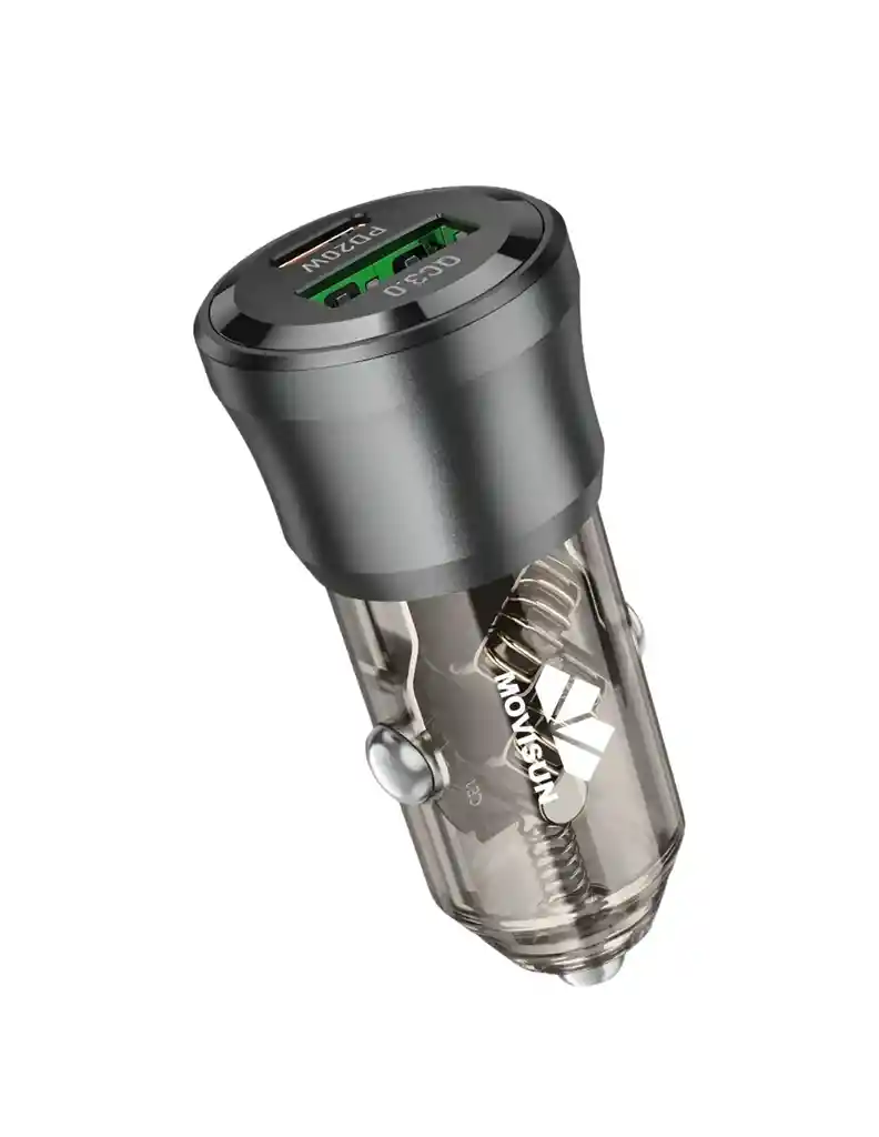 "Optimice el tiempo de carga de sus dispositivos móviles durante sus desplazamientos con el kit de carga de alto rendimiento Movisun. Este modelo está diseñado para ofrecer una carga estable, rápida y segura en vehículos particulares o de carga pesada. CARACTERÍSTICAS PRINCIPALES: Salida Dual de Alta Velocidad: Equipado con un puerto USB-C (Power Delivery 30W) y un puerto USB-A (Quick Charge 30W), permitiendo una potencia combinada de 38W para cargar dos equipos simultáneamente sin pérdida de eficiencia. Gestión Energética Inteligente: Incorpora un chip de protección contra sobrecargas, cortocircuitos y altas temperaturas, preservando la vida útil de la batería de su smartphone o tablet. Kit de Conectividad Incluido: El paquete contiene un cable USB-C a USB-C de 1.2 metros, fabricado con materiales de alta resistencia y capacidad de transmisión de energía de hasta 48W. Compatibilidad Universal: Funciona en entradas de 12V y 24V, siendo apto para automóviles, camionetas y camiones. Compatible con las principales marcas del mercado (Apple, Samsung, Xiaomi, Huawei). ESPECIFICACIONES TÉCNICAS: Modelo: AQC 30 Entrada: DC 12V - 24V Salida USB-C (PD): 5V/3A, 9V/3A, 12V/2.5A (30W Max) Salida USB-A (QC): 5V/3A, 9V/2.22A, 12V/1.67A (30W Max) Material de construcción: Policarbonato y ABS de alta densidad (Ignífugo). Longitud del cable: 120 cm."